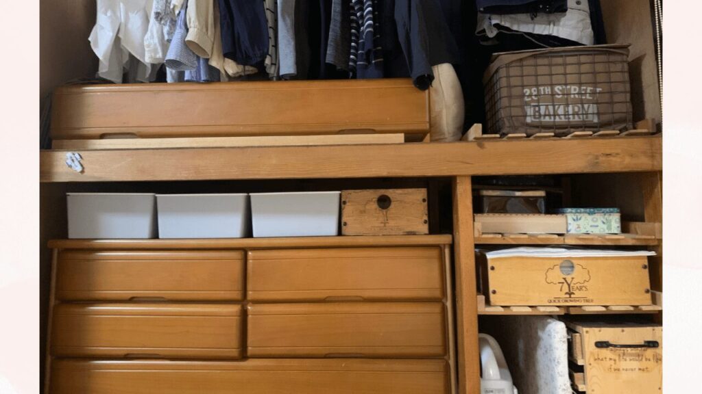 倒れてきたら危ないし、布団の上げ下ろしも大変になってきたから、そこをベットスペースに模様替えする!!と母のDIYスイッチが入りました。